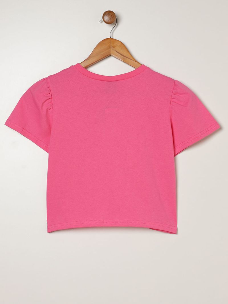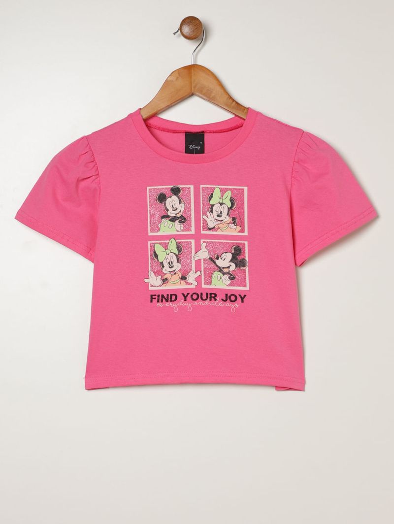 Camiseta juvenil para menina desenvolvida em meia malha de algodão, garantindo toque macio, respirabilidade e muito conforto para o dia a dia. Possui gola redonda, mangas curtas levemente bufantes e acabamentos simples que deixam o visual delicado e super atual. O comprimento cropped traz um charme moderno, enquanto a estampa da Minnie aplicada na parte frontal acrescenta um toque divertido e cheio de personalidade. Uma peça encantadora para compor looks leves, confortáveis e cheios de estilo!\n\nTecido: Meia Malha\nComposição: 100% algodão
