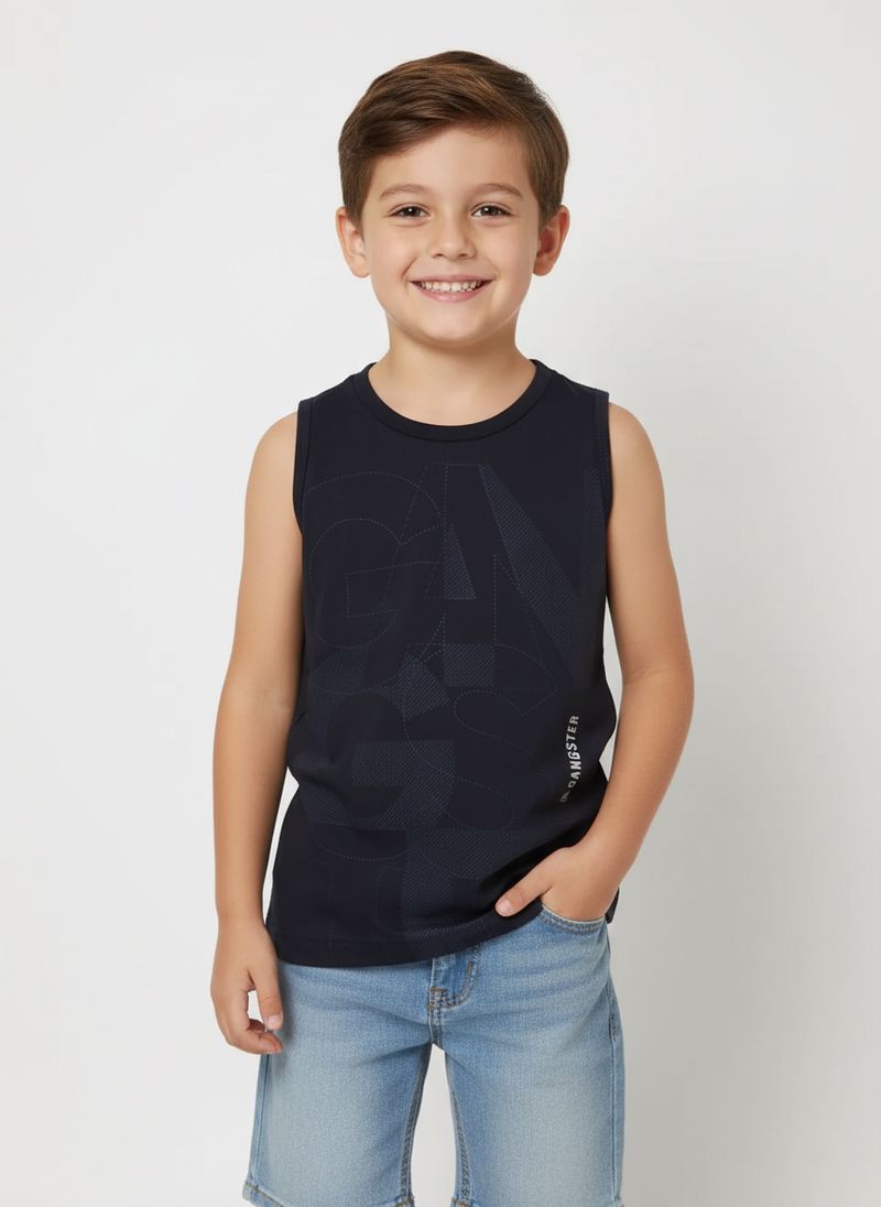 Camiseta Regata Gangster Infantil Para Menino- MARINHO