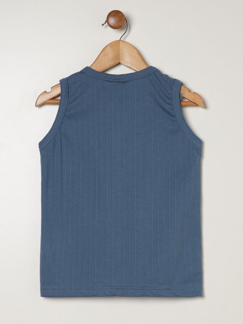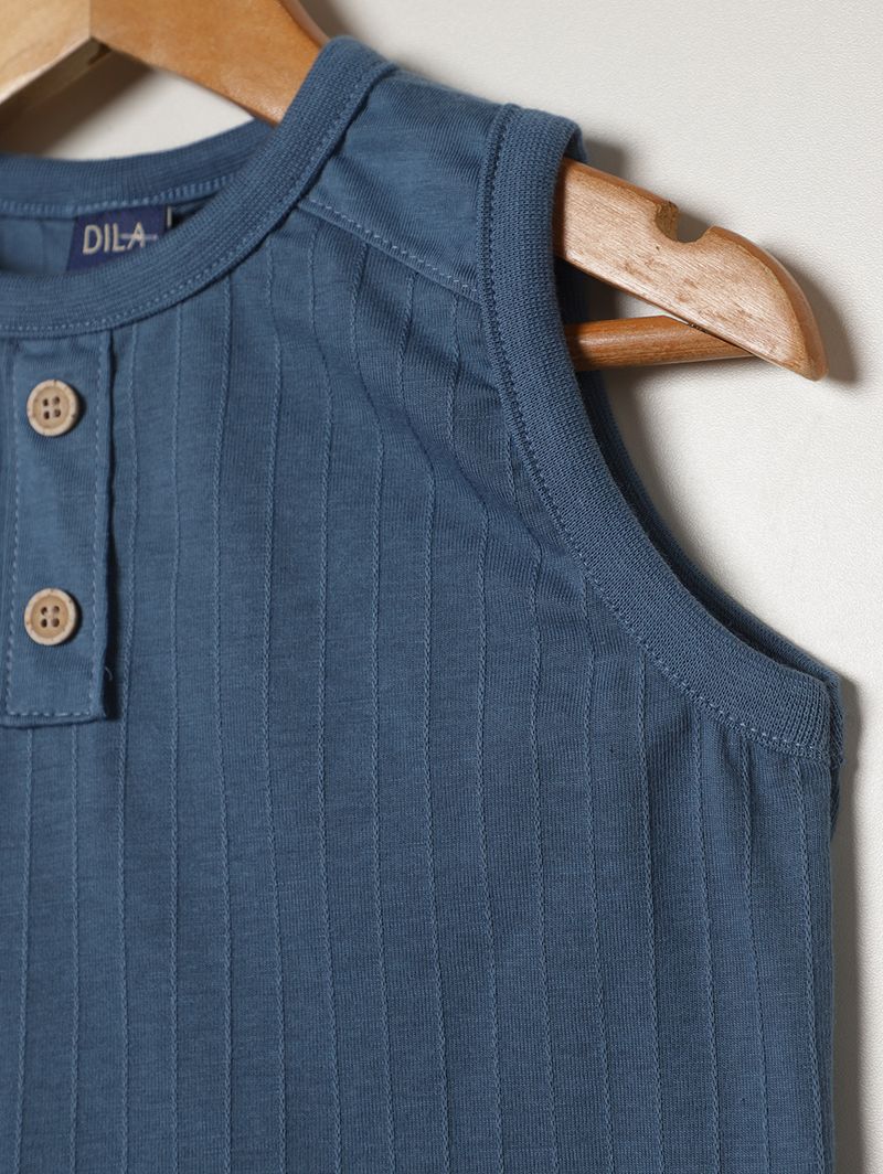 Camiseta regata infantil para menino desenvolvida em malha texturizada, que proporciona conforto, leveza e um toque moderno ao visual. Possui gola redonda, botões decorativos na parte frontal, cavas amplas e acabamentos simples, garantindo liberdade de movimentos e caimento agradável. Com design versátil e cheio de estilo, é perfeita para acompanhar os pequenos em momentos de diversão e descontração, unindo conforto e praticidade em cada detalhe!\n\nTecido: Malha Texturizada\nComposição: 52% poliéster, 48% algodão