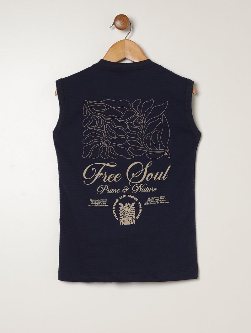 Regata infantil para menino desenvolvida em malha texturizada, garantindo conforto, leveza e um visual moderno para o dia a dia. Possui gola redonda reforçada internamente, mangas cavadas e acabamentos simples, proporcionando praticidade e liberdade de movimento para acompanhar todas as brincadeiras. O lettering frontal adiciona um toque estiloso e atual, deixando o look ainda mais descolado. Uma peça versátil e confortável para compor produções frescas e cheias de personalidade!\n\nTecido: Malha Texturizada\nComposição: 50% algodão, 50% poliéster