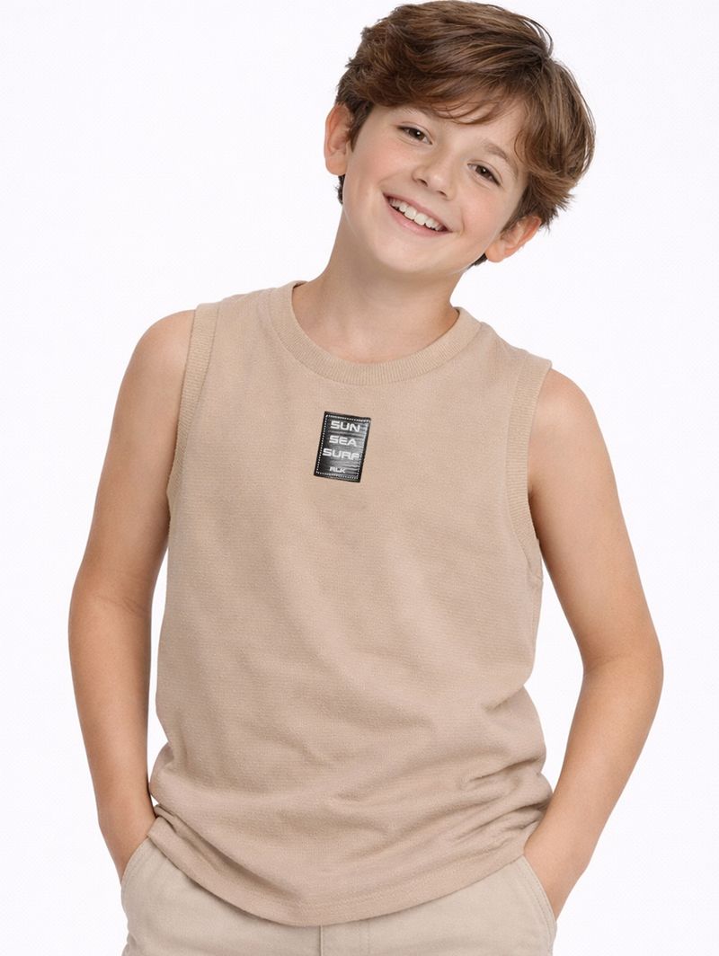 Camiseta Regata Piquet Infantil Para Menino - BEGE
