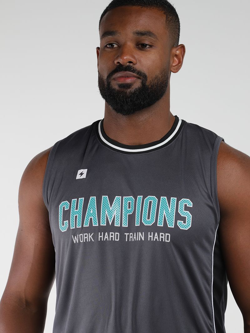Regata masculina desenvolvida em malha leve de poliéster, garantindo secagem rápida, conforto térmico e liberdade de movimento para atividades físicas e momentos casuais. Possui gola redonda com reforço interno, mangas cavadas e acabamentos simples, oferecendo praticidade e caimento confortável. O design moderno é complementado pela estampa esportiva na parte frontal, que traz energia e estilo ao visual. Uma peça perfeita para treinos, caminhadas e para quem busca conforto aliado a um visual esportivo e atual!\n\nTecido: Malha\nComposição: 100% poliéster
