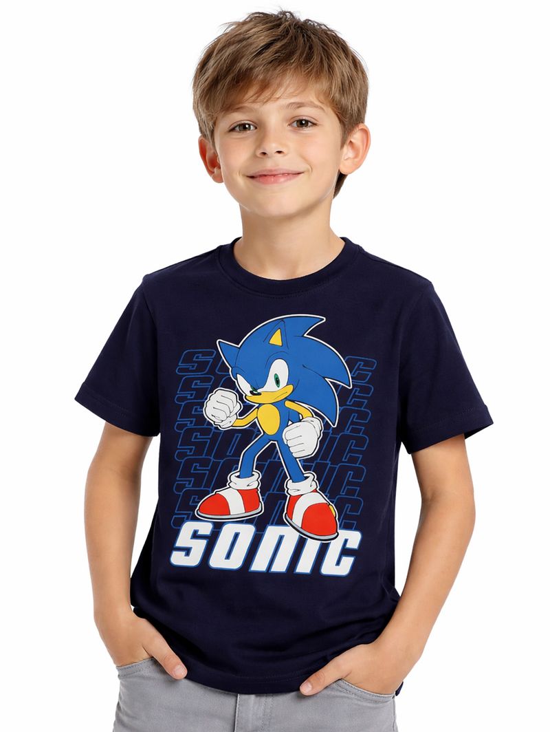 Camiseta Sonic Manga Curta Infantil Para Menino- MARINHO