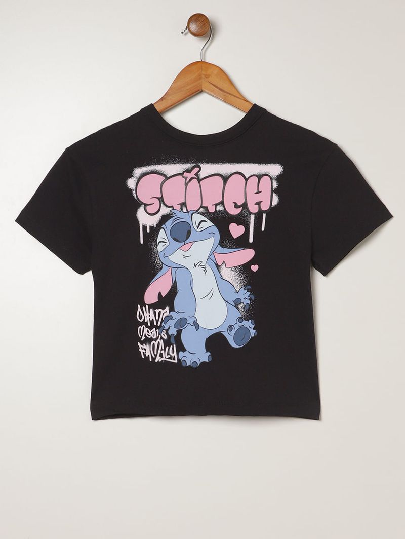 Camiseta Stitch Disney Juvenil Para Menina - PRETO