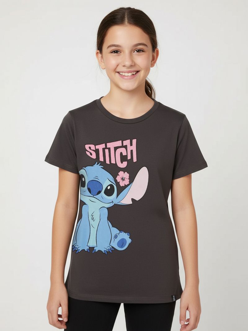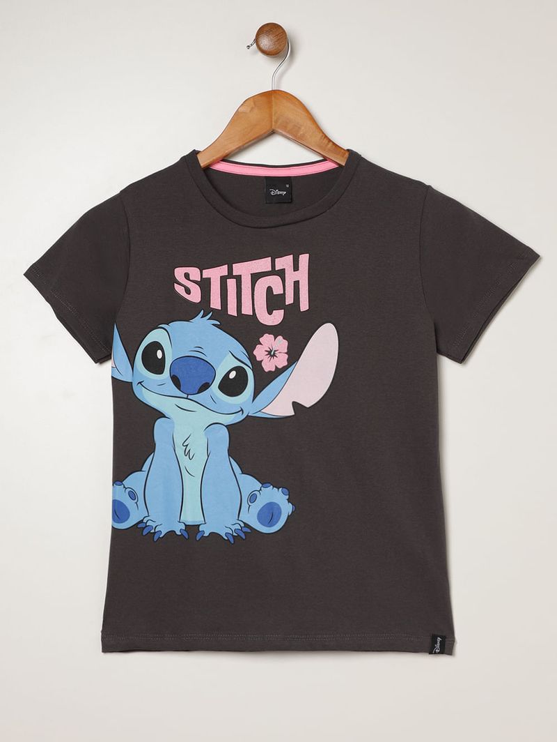 Camiseta Stitch Manga Curta Juvenil Para Menina- CHUMBO