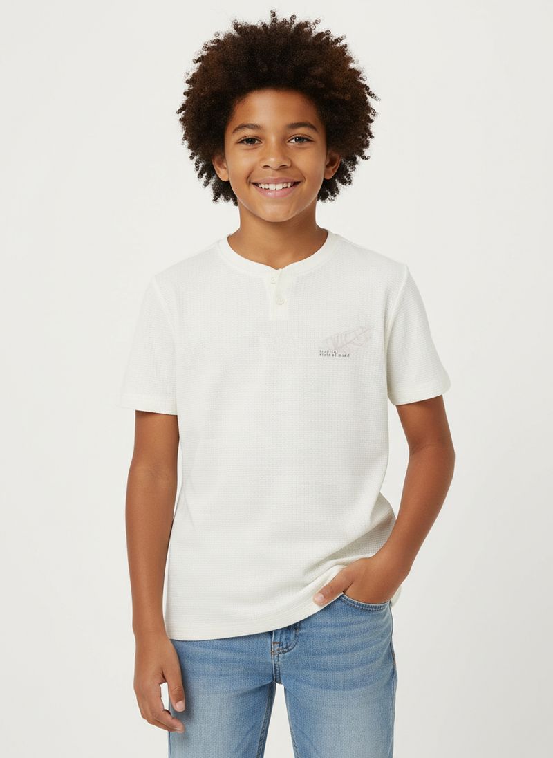 Camiseta Tricot Manga Curta Juvenil Para Menino - OFF WHITE