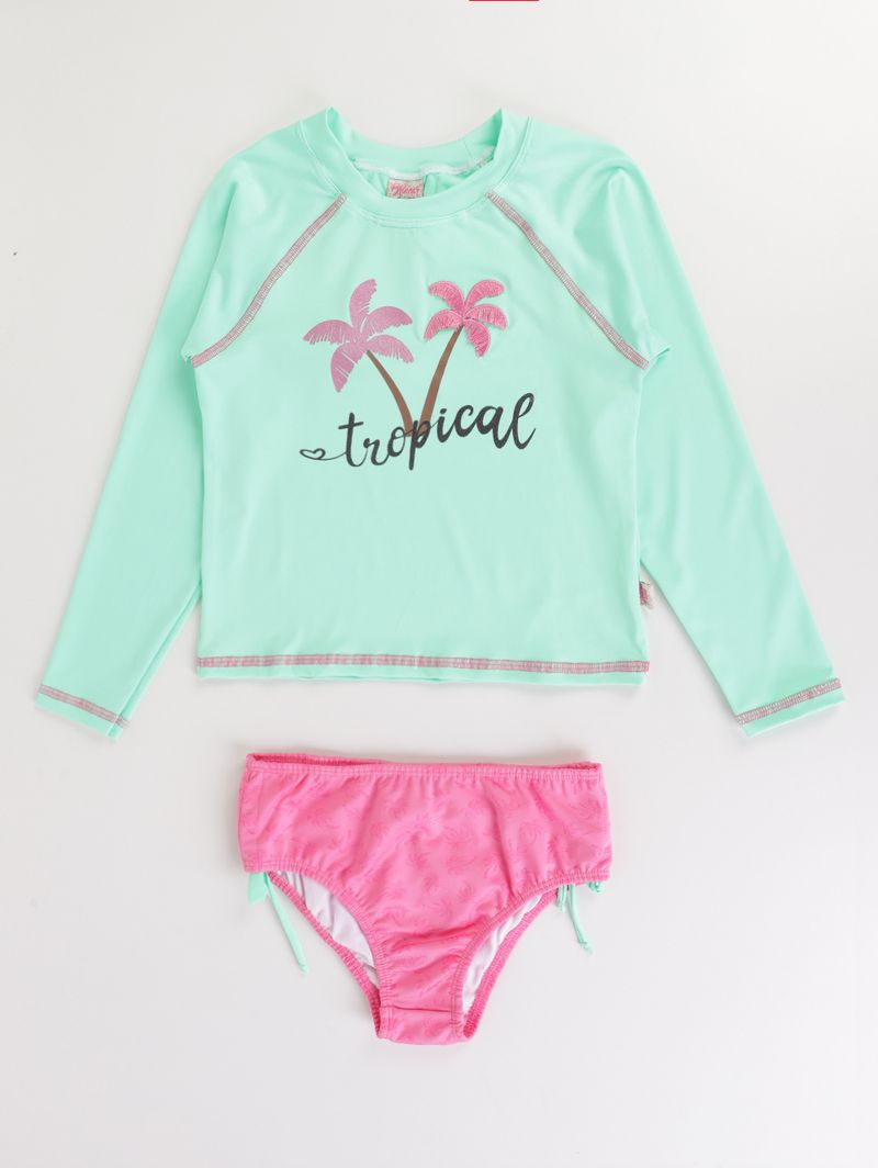 Camiseta UV com Calcinha Infantil Para Menina - VERDE/ROSA