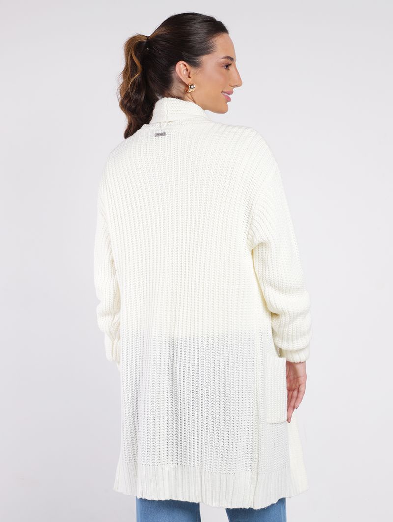 Cardigan de Tricot Alongado Feminino OFF WHITE