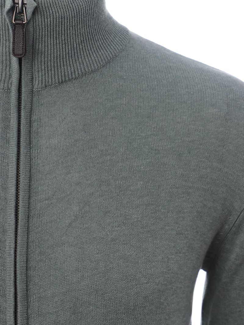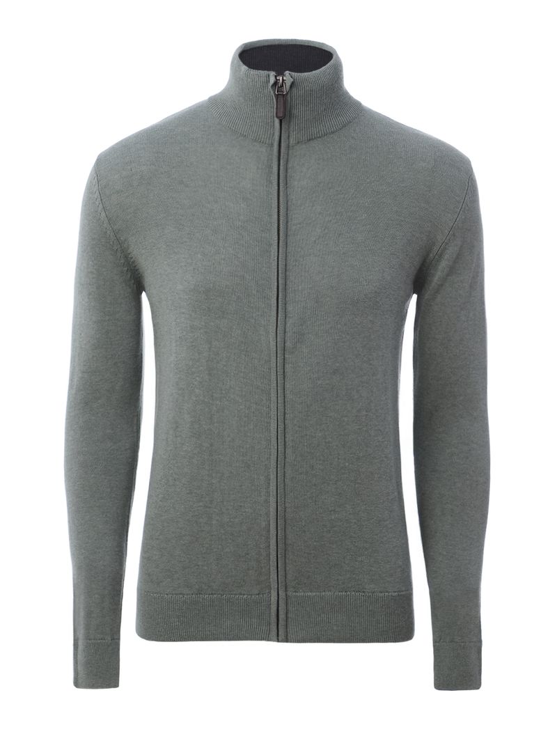 Jaqueta masculina desenvolvida em tricot leve e macio. Possui gola alta, fechamento por zíper, mangas compridas com acabamento em punho e barra com acabamento canelado. Tudo o que você precisa para looks confortáveis nos dias amenos da estação!