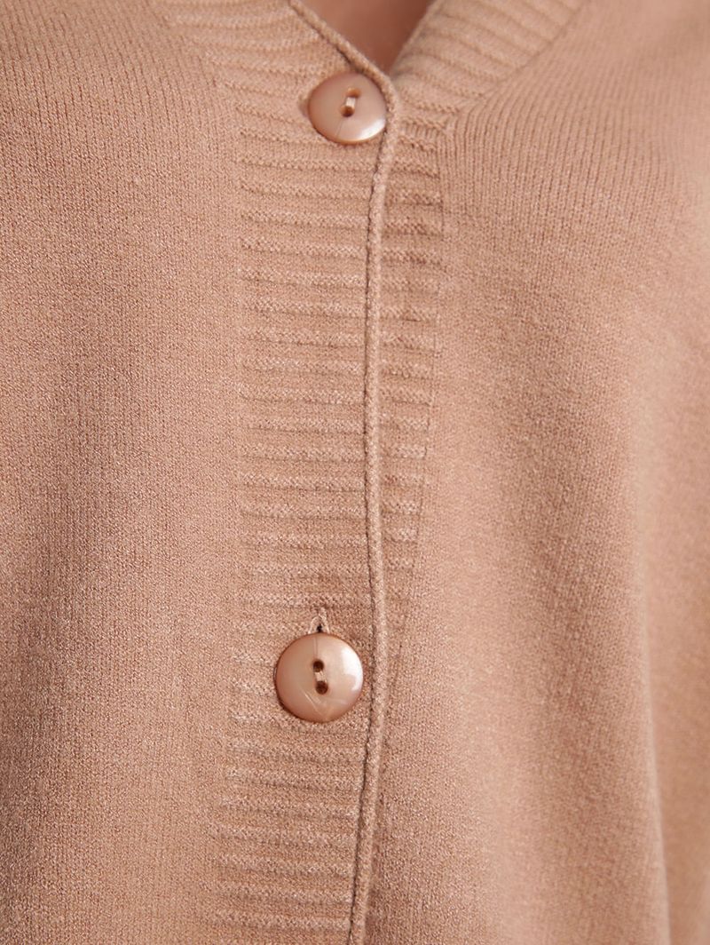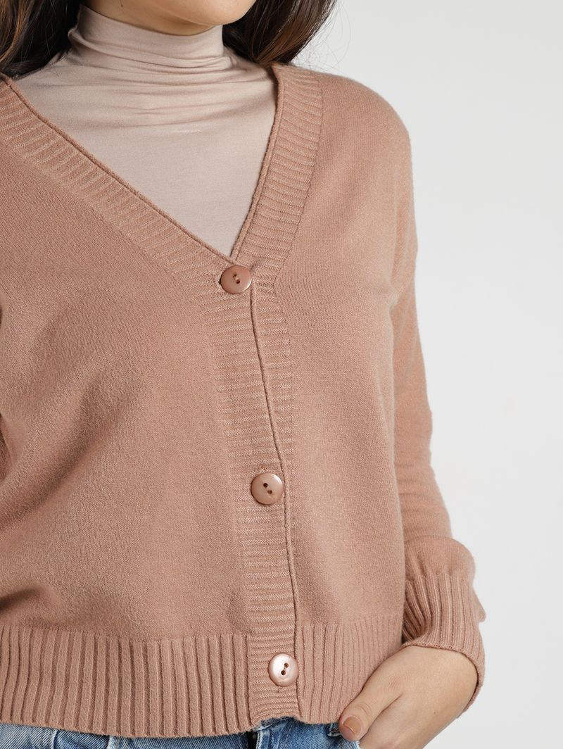 Cardigan feminino desenvolvido em tricot modal, um tecido feito com a técnica do tricot, mas com uma textura ultra macia e sedosa. O modelo apresenta decote em V, abotoamento frontal funcional, mangas compridas com punho e barra com acabamento canelado. A garantia de looks descomplicados com uma terceira peça cheia de estilo!\n\nTecido: Tricot Modal\nComposição: 50% viscose, 28% poliéster, 22% poliamida