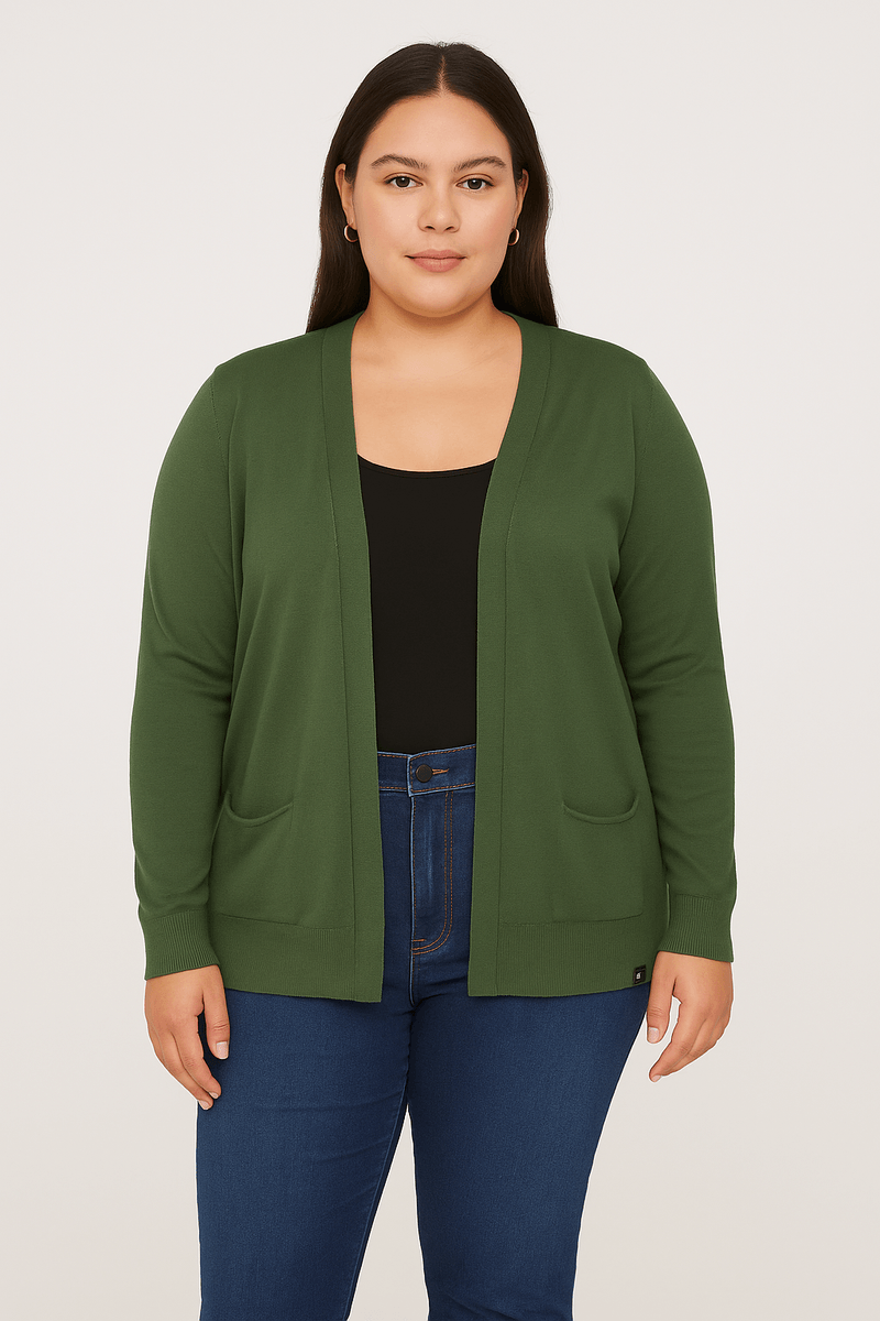 Casaco Cardigan Alongado Plus Size Feminino VERDE