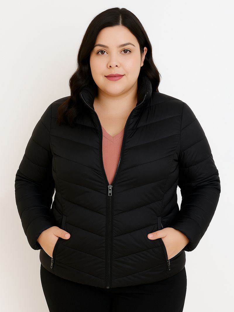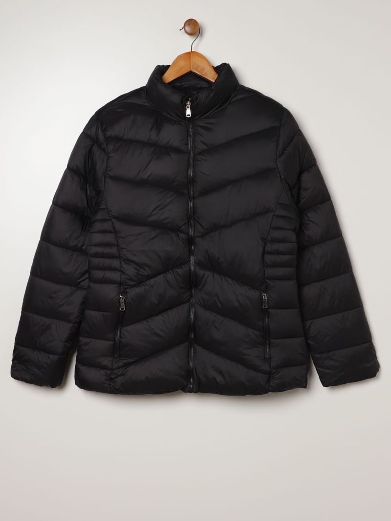 Jaqueta Puffer Nylon Forrada Plus Size Feminina PRETO
