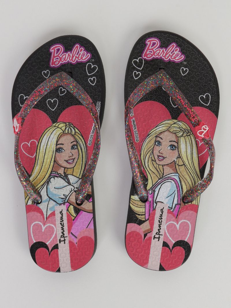Chinelo Barbie Ipanema Infantil Para Menina- PRETO/ROSA