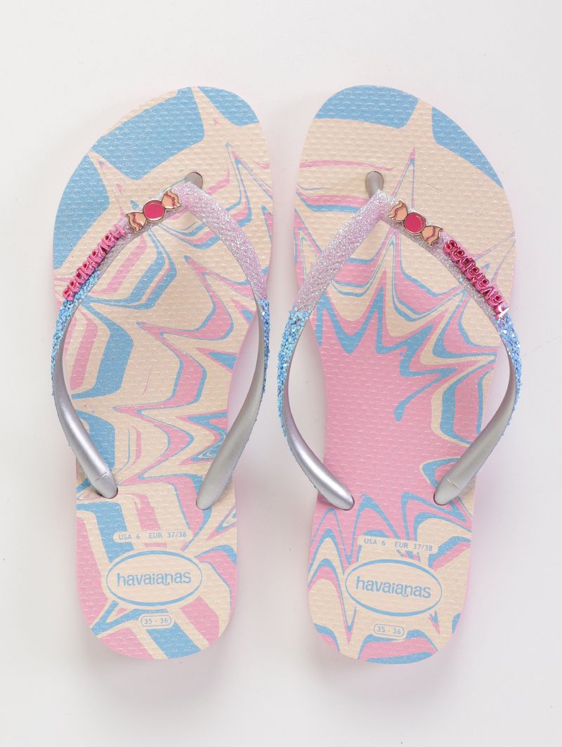 Chinelo infantil para menina desenvolvido em material emborrachado , resistente, flexível e confortável para os pés. Além disso, é altamente durável, suportando o uso constante sem perder a forma. O modelo slim se caracteriza por possuir um design moderno com tiras mais finas. Apresenta divisor de dedos, palmilha macia texturizada e solado com frisos antiderrapantes. Como diferencial, possui estampa inspirada em um mundo fantástico repleta de glitter holográfico, já suas tiras ganham ainda mais brilho e um charmoso acessório central. Transforme o dia a dia das crianças em uma verdadeira diversão com esse chinelo infantil!