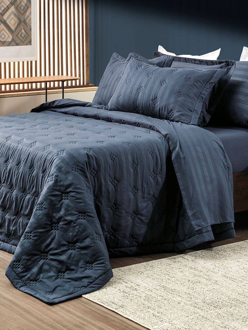 Colcha Casal Toque Acetinado Altenburg AZUL