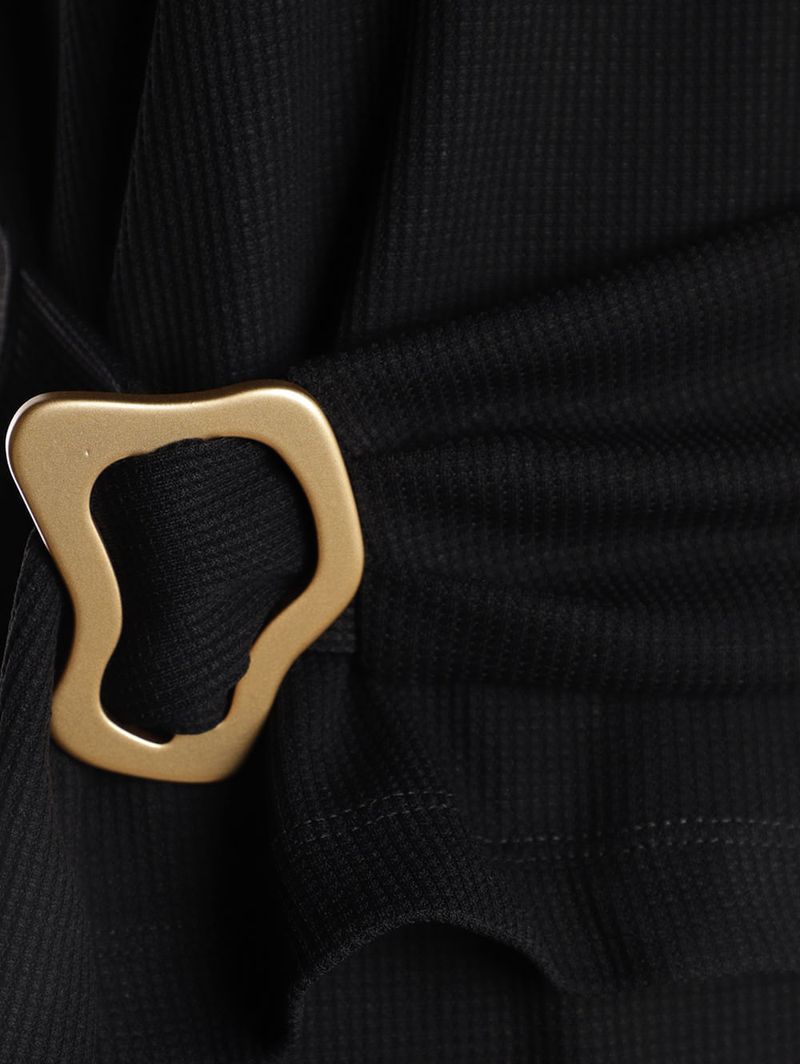 Conjunto feminino composto por duas peças, sendo uma blusa e uma saia, ambas confeccionadas em malha texturizada , um tecido macio e com caimento confortável. A blusa apresenta gola média, mangas cavadas, acabamentos simples e detalhe de tira com ajuste por aviamento orgânico. A saia possui comprimento midi , cós elástico e acabamentos simples. O conjunto perfeito para quem ama um visual marcante e cheio de estilo!