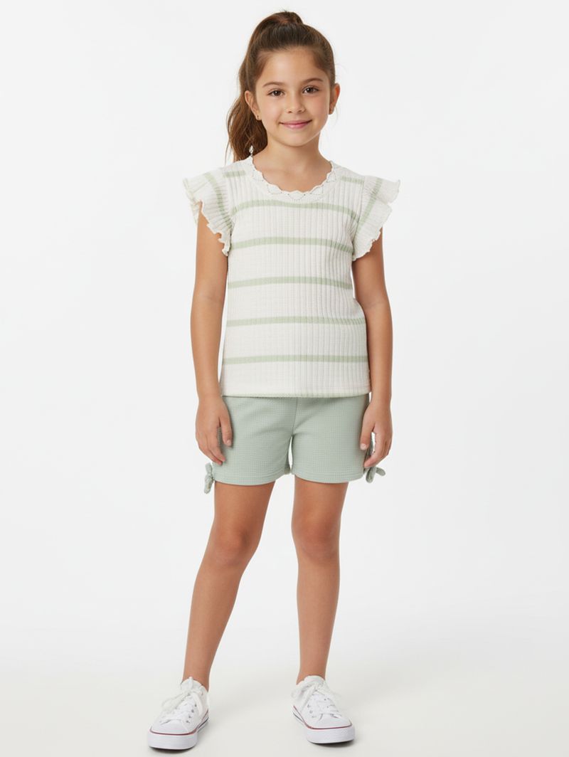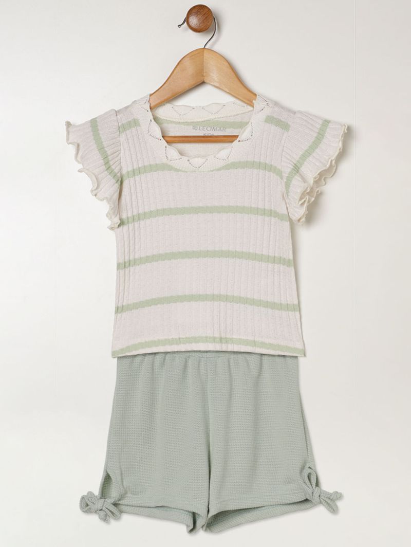 Conjunto Curto Canelado Infantil Para Menina- VERDE