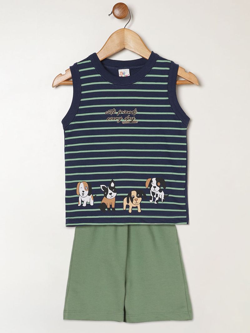 Conjunto curto infantil para bebê desenvolvido em tecidos leves e macios, garantindo muito conforto e liberdade de movimento para os dias mais quentes. A regata é confeccionada em meia malha 100% algodão e possui gola redonda, mangas cavadas e barra com acabamento simples, além de estampa frontal que traz um toque de fofura ao visual. A bermuda, feita em moletinho também 100% algodão, conta com cós elástico que proporciona ajuste confortável e barra com acabamento simples, assegurando praticidade. Um conjunto perfeito para compor looks casuais com suavidade e bem-estar para o bebê!\n\nTecido: Regata: meia malha | Bermuda: moletinho\nComposição: 100% algodão