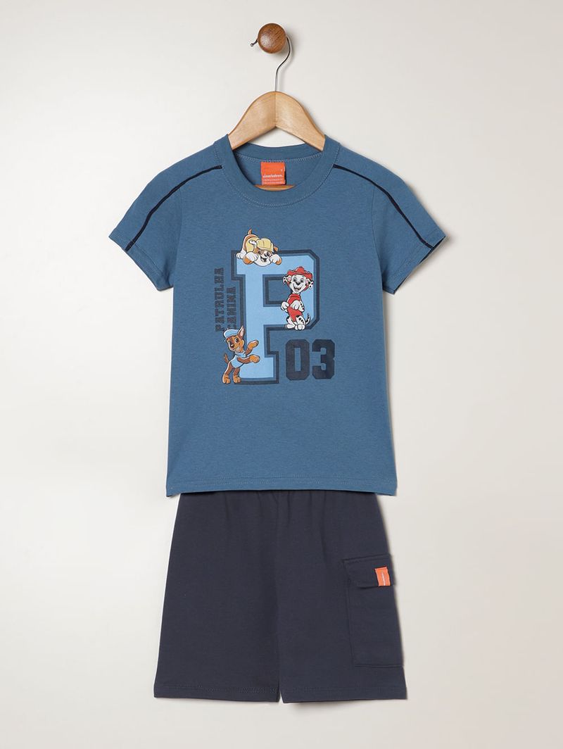 Conjunto infantil para menino desenvolvido para garantir conforto e estilo nos momentos de diversão. A camiseta é confeccionada em meia malha macia, com gola redonda, mangas curtas e acabamentos simples que proporcionam ótimo caimento. A bermuda, feita em moletinho leve, possui cós elástico, bolso cargo funcional e acabamento prático para o dia a dia. O destaque fica por conta da estampa da Patrulha Canina na camiseta, trazendo um toque lúdico e divertido que os pequenos adoram. Conforto, diversão e o encanto da Patrulha Canina em um conjunto perfeito para acompanhar as aventuras dos pequenos!\n\nTecido Camiseta: Meia Malha\nTecido Bermuda: Moletinho\nComposição: 100% algodão