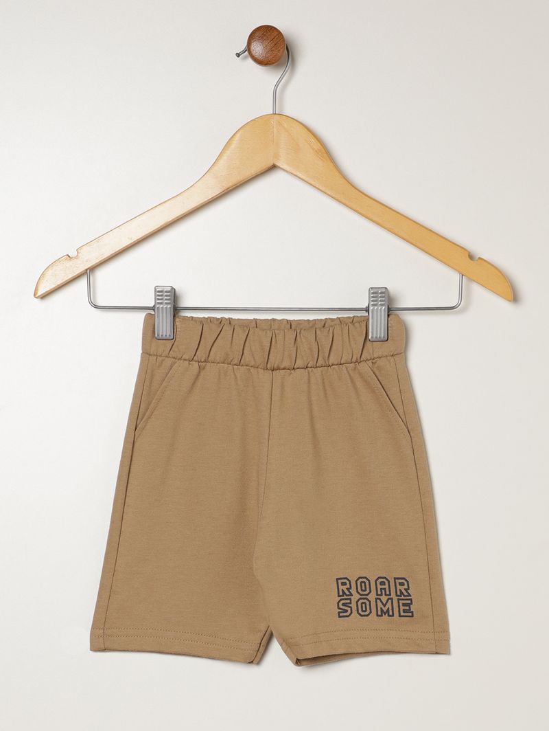 Conjunto infantil para menino composto por regata e bermuda. A regata desenvolvida em meia malha um tecido de algodão, possui gola redonda com reforço interno que confere maior durabilidade, mangas cavadas, barra com acabamento simples e diferencial de estampa frontal de dinossauro.A bermuda desenvolvida em moletinho, apresenta cós elástico, barra com acabamento simples e diferencial de escritas na parte frontal. Estilo e praticidade em um só look, o conjunto que deixa os pequenos prontos para tudo!\n\nTecido regata: Meia Malha\nTecido bermuda: Moletinho\nComposição: 100% algodão
