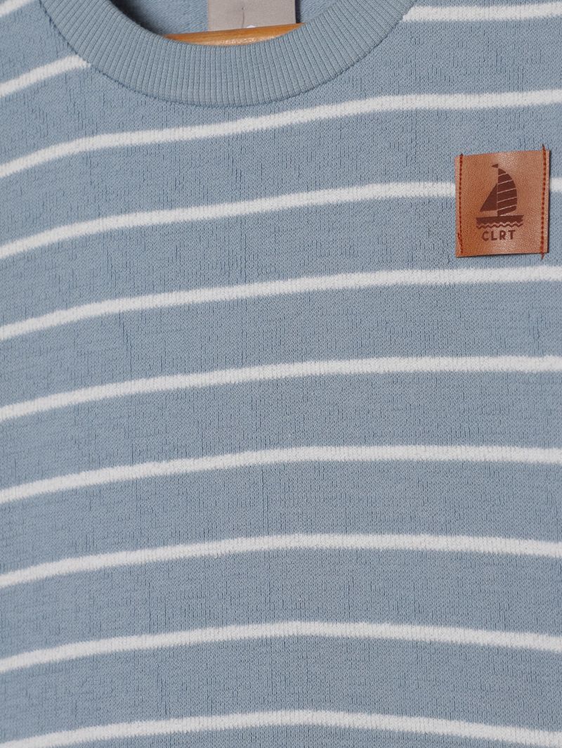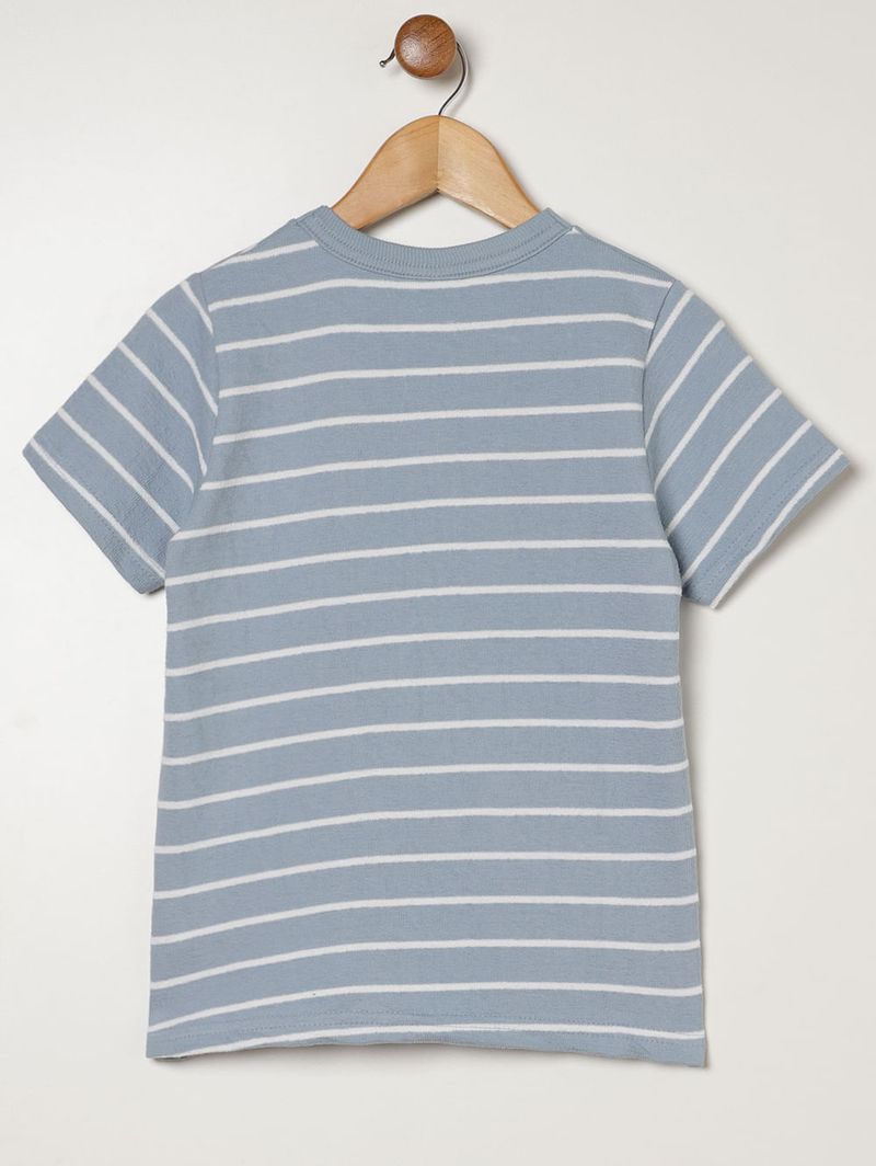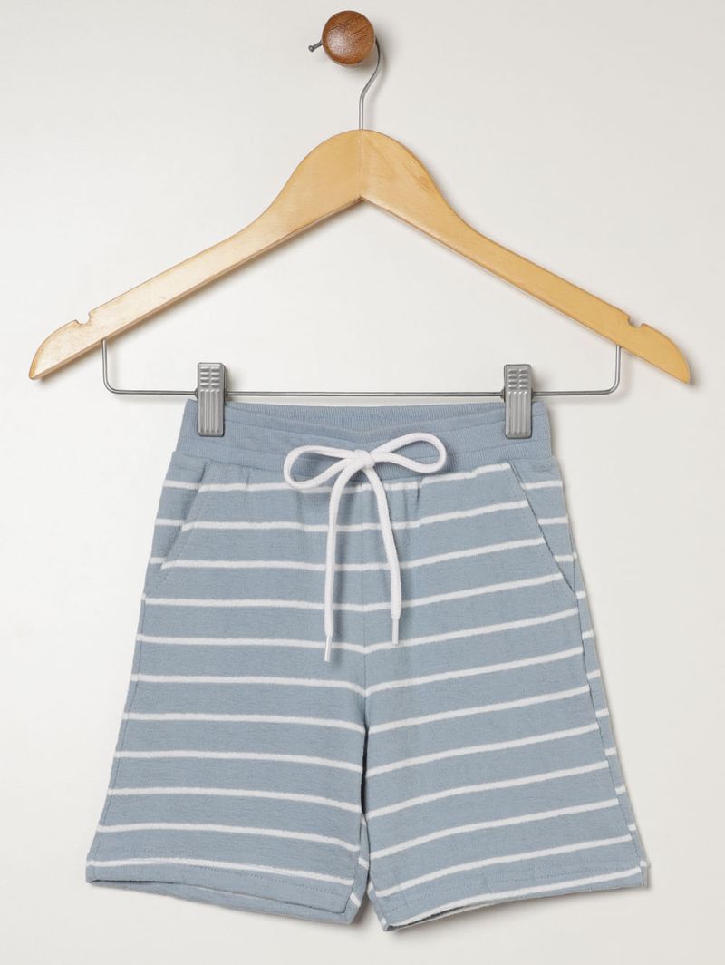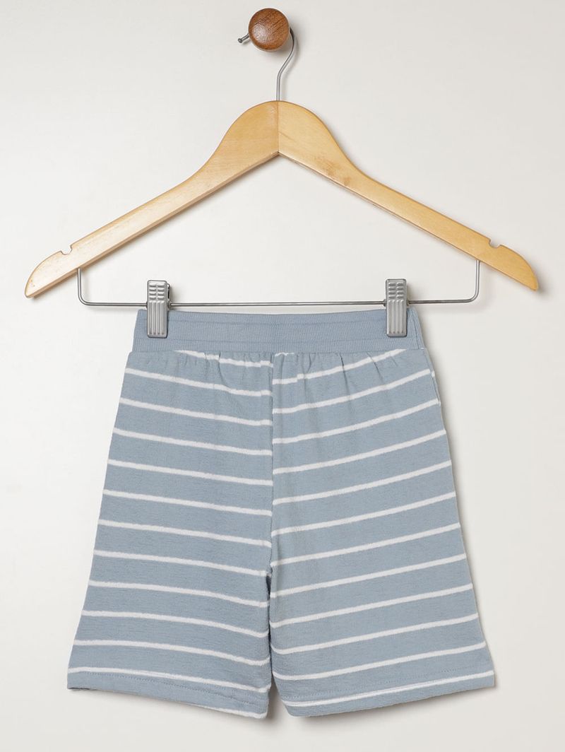 Conjunto curto infantil para menino desenvolvido em malha moletinho macia, garantindo conforto e praticidade para o dia a dia. A camiseta possui gola redonda canelada com reforço interno, mangas curtas e barra com acabamento simples, oferecendo caimento leve e agradável. A bermuda apresenta cós elástico com cordão decorativo, bolsos frontais funcionais e barra com acabamento simples, proporcionando ajuste confortável e funcionalidade. O diferencial fica por conta da padronagem listrada presente nas duas peças, criando um visual harmônico e moderno. Um conjunto perfeito para compor looks casuais com muito conforto e estilo!\n\nTecido: Malha moletinho\nComposição: 78% algodão, 22% poliéster
