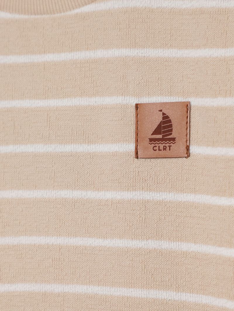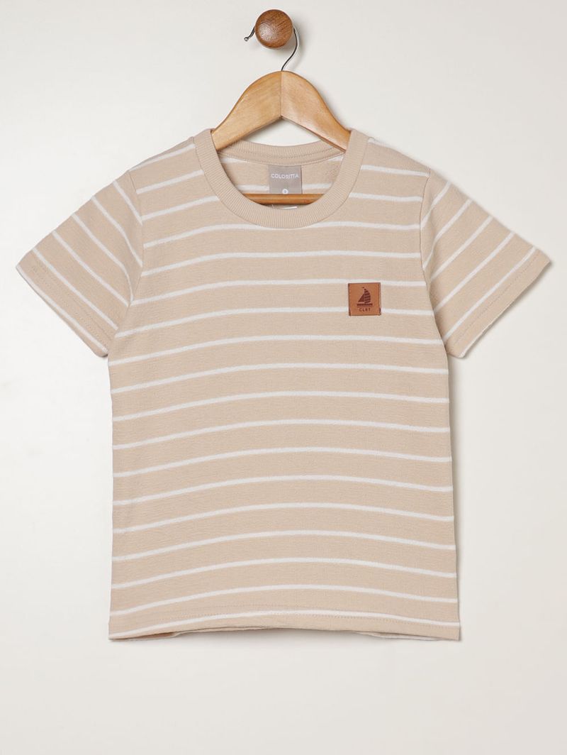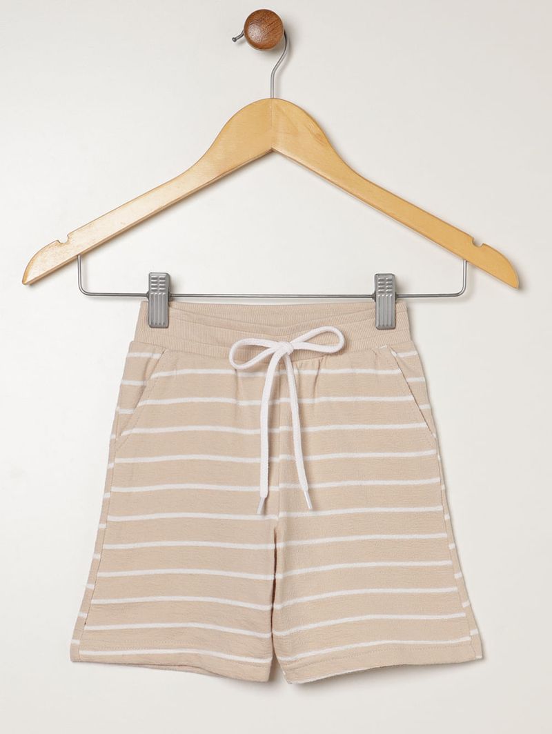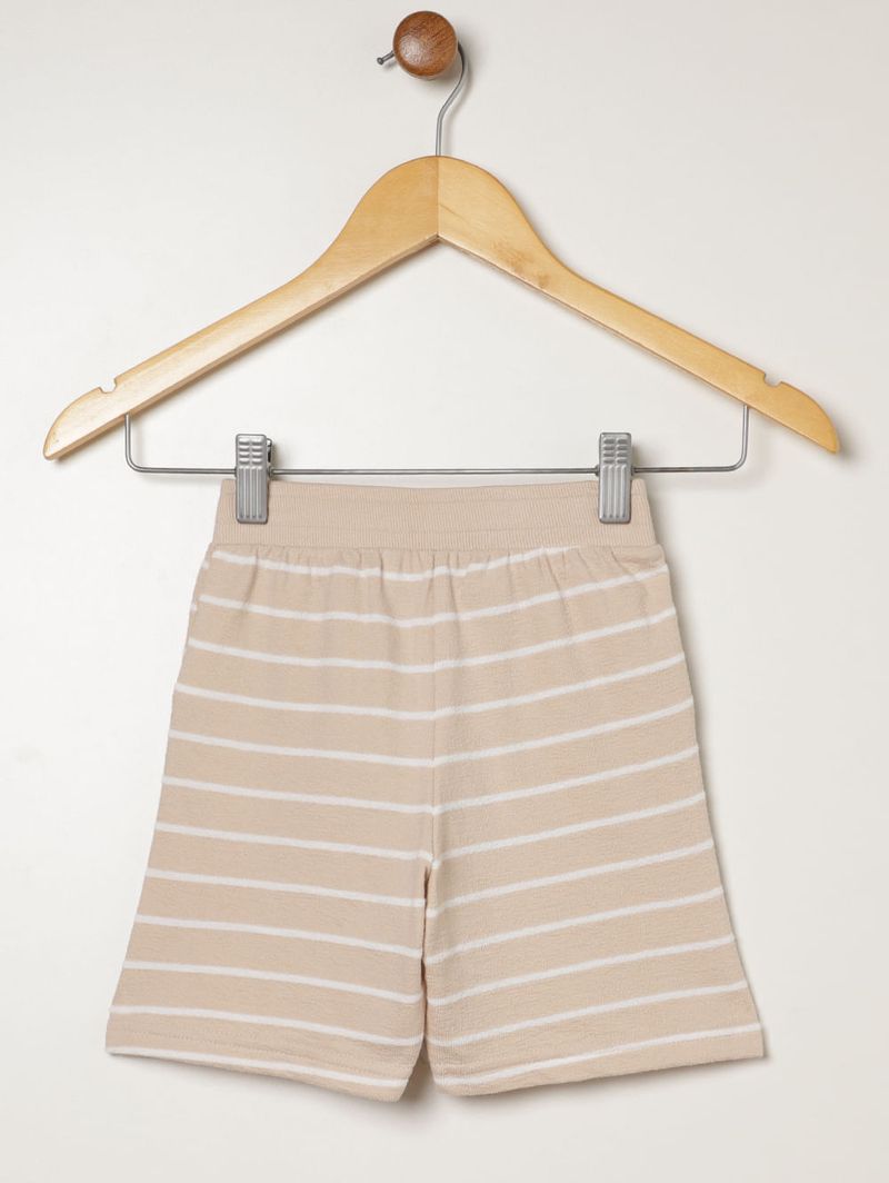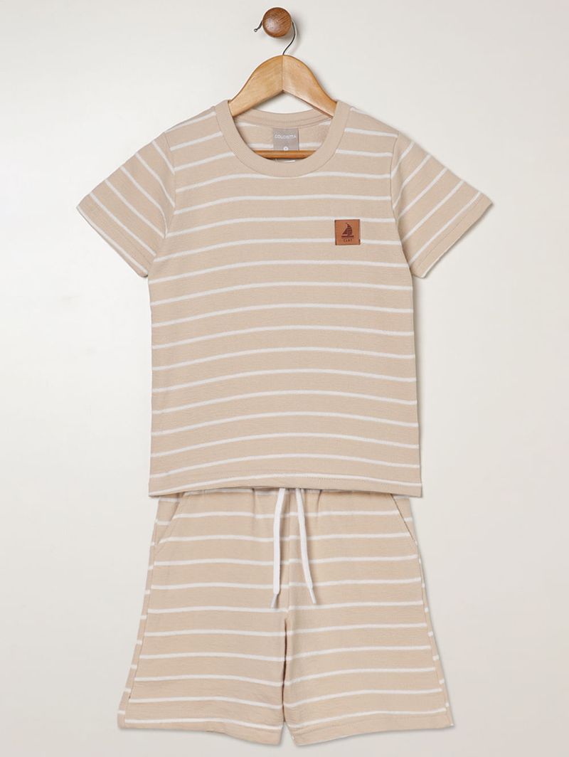 Conjunto Curto Listrado Infantil Para Menino - BEGE