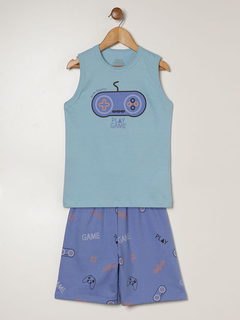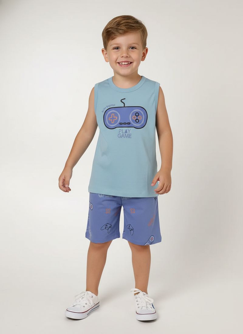 Conjunto Curto Moletinho Infantil Para Menino- AZUL