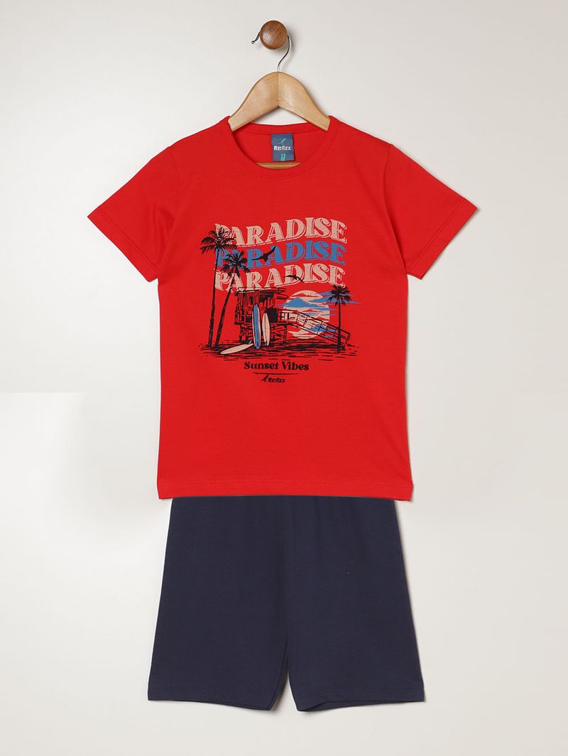 Conjunto Curto Moletinho Infantil Para Menino- VERMELHO