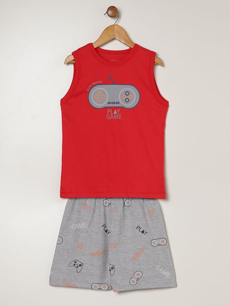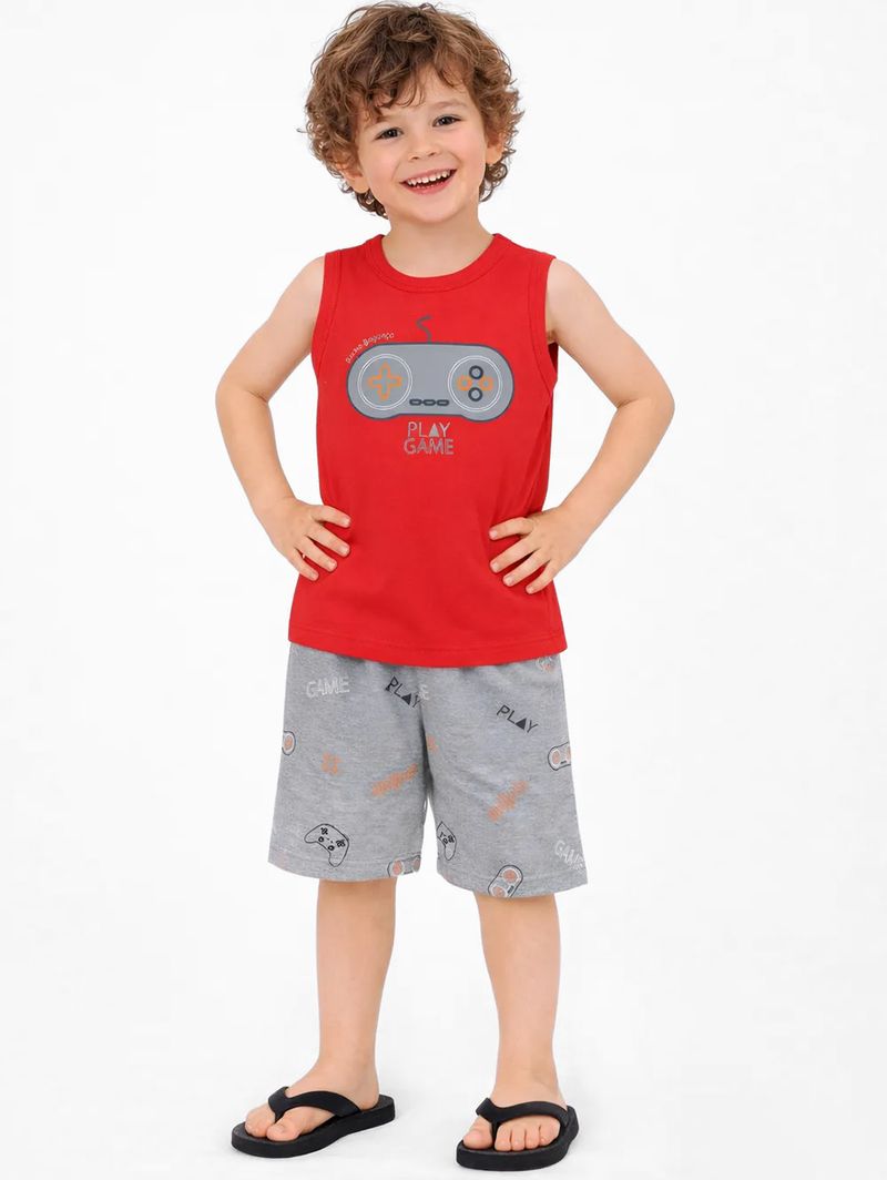 Conjunto Curto Moletinho Infantil Para Menino- VERMELHO