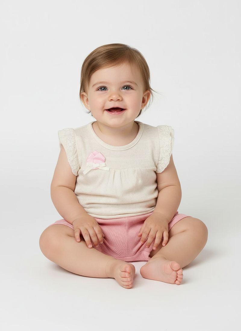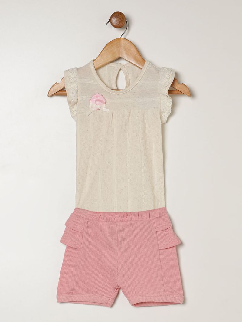 Conjunto Curto Texturizado Infantil Para Bebê- BEGE