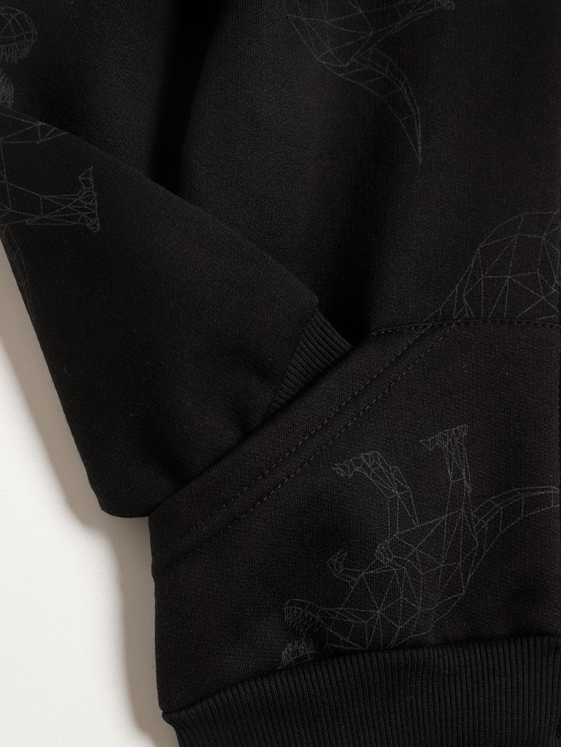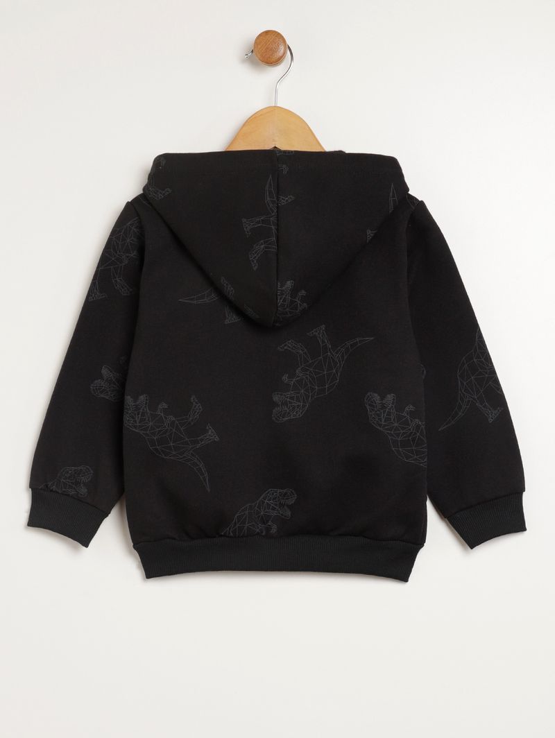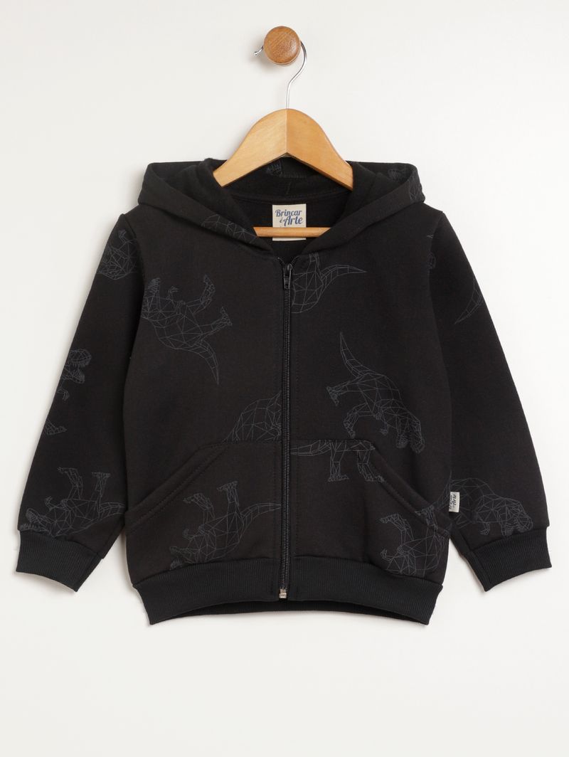Conjunto infantil para menino composto por jaqueta e calça, ambas desenvolvidas em moletom com parte interna flanelada que garante muito mais aconchego aos pequenos. A jaqueta possui capuz com reforço interno que garante mais durabilidade, capuz, mangas compridas, fechamento frontal por zíper, bolsos canguru na parte frontal e barra com acabamento canelado, além de diferencial de estampa de dinossauros em toda a extensão da peça. A calça apresenta cós elástico, bolsos frontais funcionais e barra com acabamento em punho. O conjunto perfeito para os momentos de lazer dos pequenos!\n\nTecido: Moletom\nComposição: 50% algodão, 50% poliéster