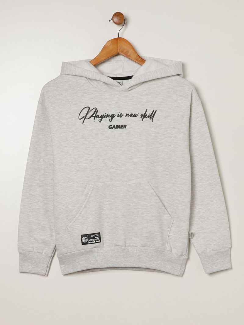 Conjunto juvenil para menino composto por duas peças, sendo um blusão e uma calça, ambos desenvolvidos em moletom com parte interna flanelada, proporcionando conforto e aconchego nos dias mais frios. O blusão possui capuz, mangas longas com punho, acabamentos canelados e bolso canguru. Conta com estampa de frase em relevo na parte frontal. A calça apresenta cós elástico e barra com acabamento em punho. Possui bolso decorativo na parte frontal. Aposte em conforto para os looks do seu menino!
