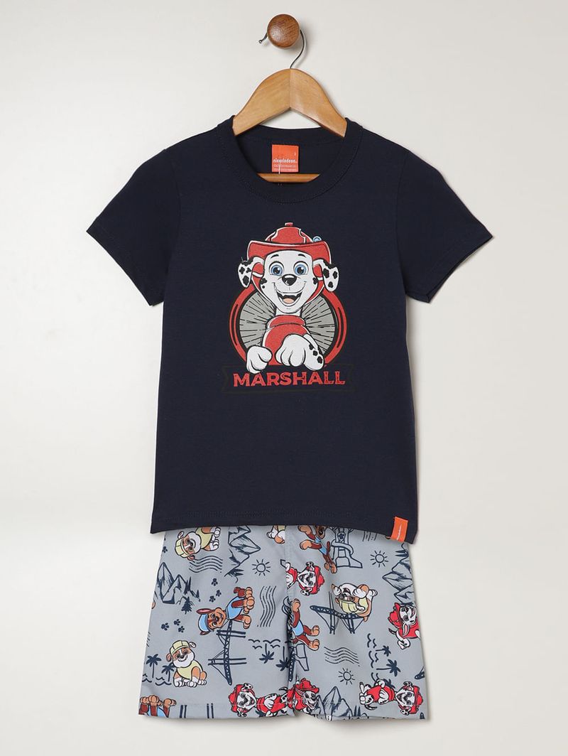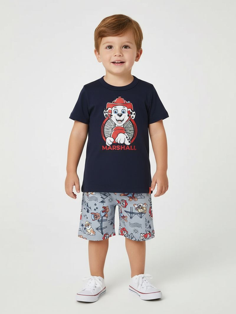 Conjunto infantil para menino inspirado na Patrulha Canina, perfeito para os pequenos se divertirem com conforto e estilo. A camiseta é confeccionada em meia malha100% algodão, com gola redonda, mangas curtas e acabamentos simples que garantem toque macio e respirabilidade. A bermuda, feita em tecido plano 100% poliéster, possui cós elástico que proporciona ajuste confortável e liberdade de movimento. O destaque fica por conta das estampas da Patrulha Canina presentes nas duas peças, tornando o visual ainda mais divertido e cheio de personalidade. Ideal para o dia a dia, esse conjunto é a escolha perfeita para acompanhar os meninos em todas as aventuras!\n\nTecido Camiseta: Meia Malha\nTecido Bermuda: Tecido Plano\nComposição Camiseta: 100% algodão\nComposição Bermuda: 100% poliéster