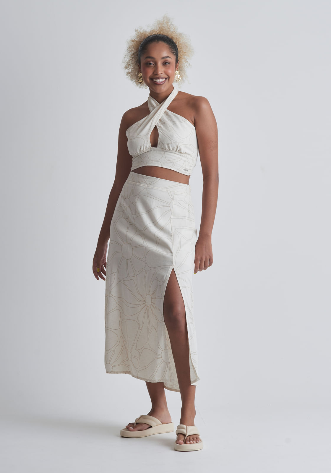 Cropped linho floral