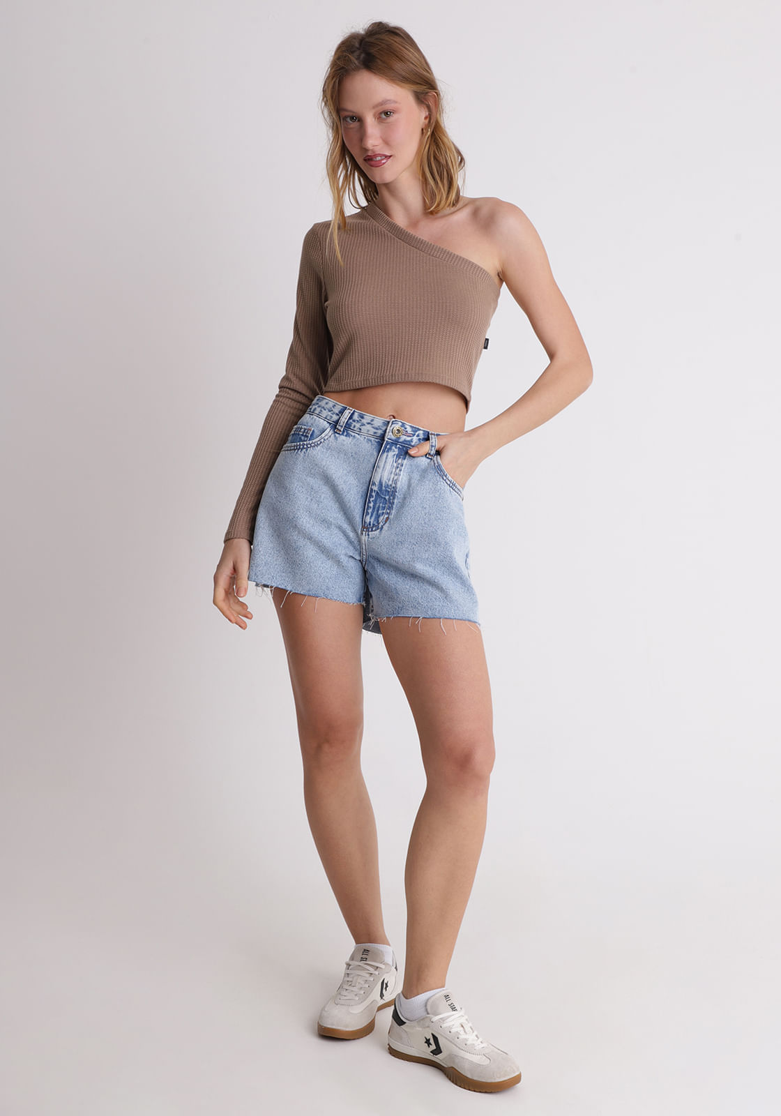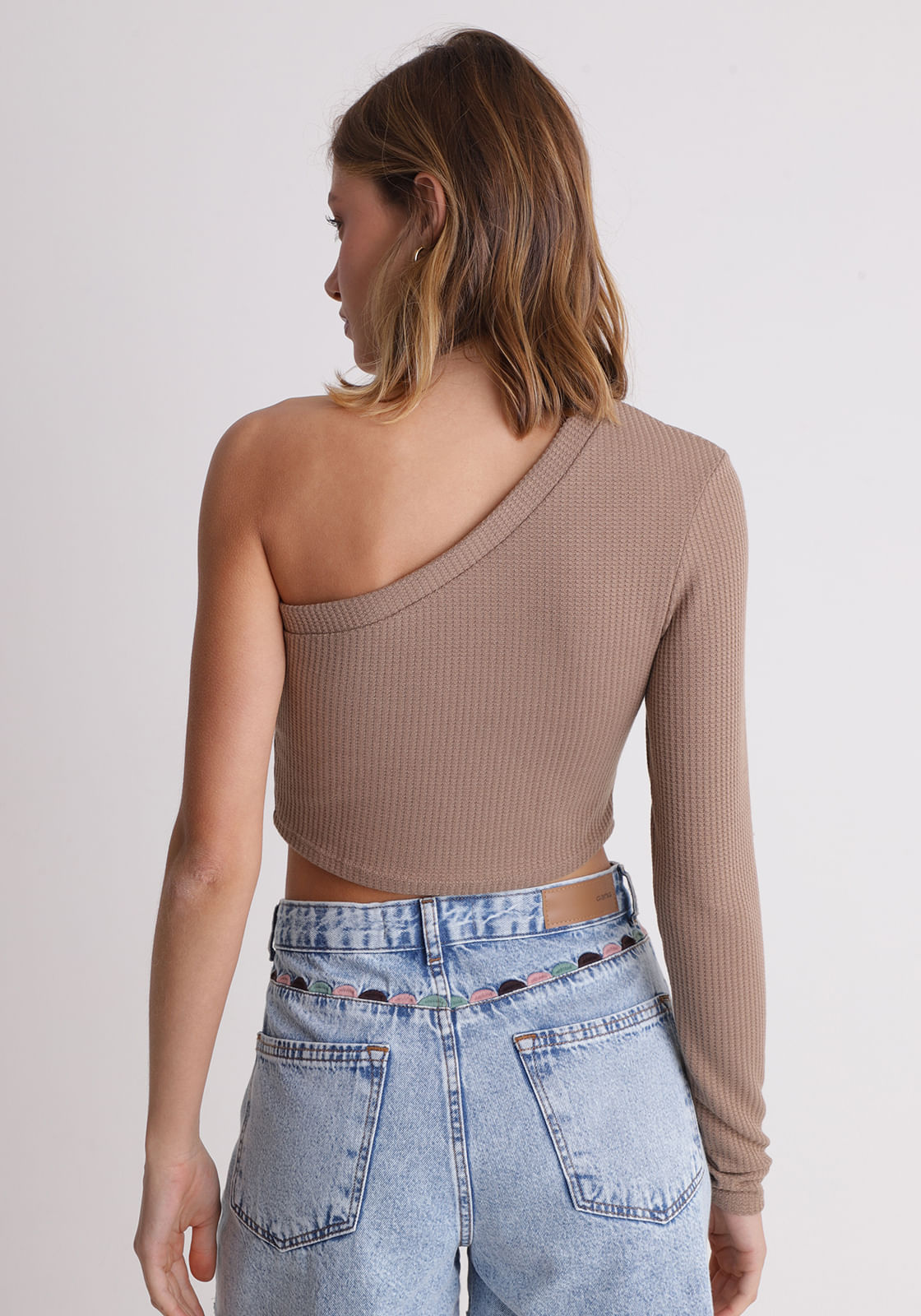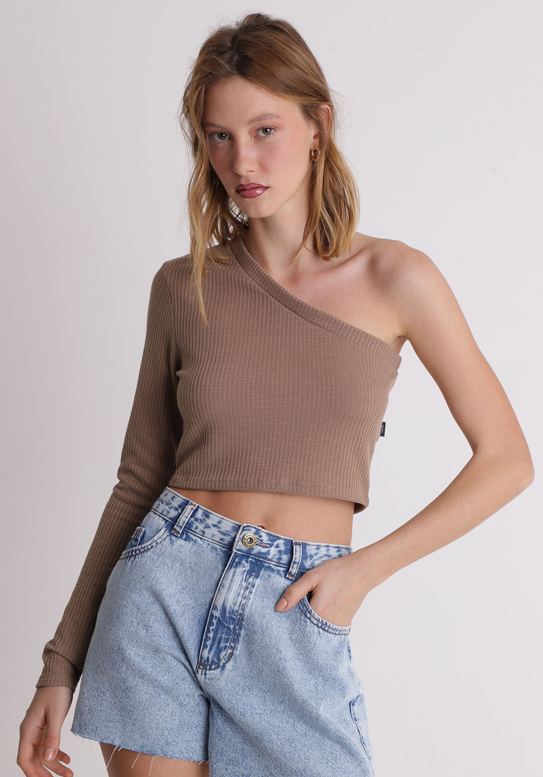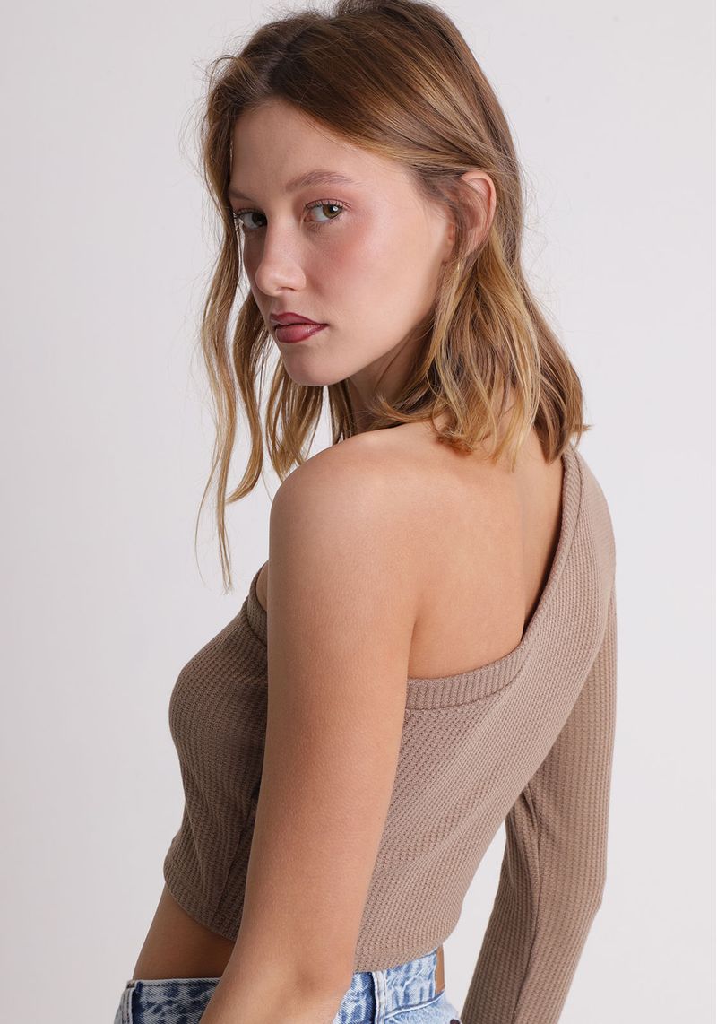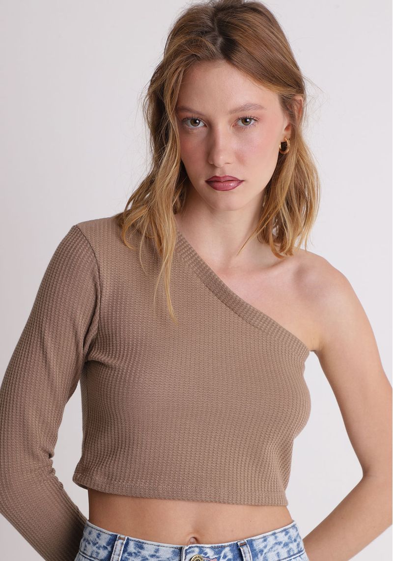 Cropped um ombro só manga longa
