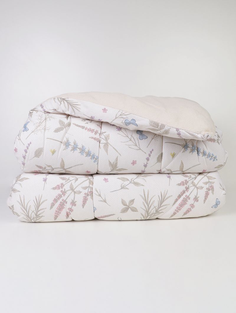 Edredom dupla face para cama queen desenvolvido em plush de um lado e em malha jersey do outro. A coleção Blend Malha foi desenvolvida para acompanhar os invernos, oferecendo equilíbrio entre leveza e aconchego, além de estampas que deixam o seu quarto ainda mais bonito. Possui enchimento em poliéster thermobonder garante volume e promove aconchego para suas noites de sono. Este edredom é prático por não amassar e possui secagem rápida, facilitando a manutenção. Transforme suas noites em um abraço aconchegante com um edredom que é puro carinho e maciez!\n\nContém: 01 Edredom\nTecido: Plush e Malha Jersey\nTamanho: Queen\nMedidas: 2,60m x 2,40m\nComposição malha: 100% algodão\nComposição plush e enchimento: 100% poliéster