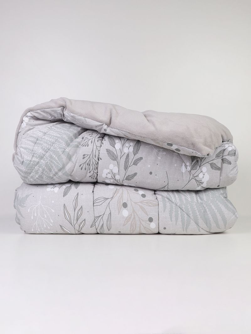 Edredom dupla face para cama queen desenvolvido em plush de um lado e em malha jersey do outro. A coleção Blend Malha foi desenvolvida para acompanhar os invernos, oferecendo equilíbrio entre leveza e aconchego, além de estampas que deixam o seu quarto ainda mais bonito. Possui enchimento em poliéster thermobonder garante volume e promove aconchego para suas noites de sono. Este edredom é prático por não amassar e possui secagem rápida, facilitando a manutenção. Transforme suas noites em um abraço aconchegante com um edredom que é puro carinho e maciez!\n\nContém: 01 Edredom\nTecido: Plush e Malha Jersey\nTamanho: Queen\nMedidas: 2,60m x 2,40m\nComposição malha: 100% algodão\nComposição plush e enchimento: 100% poliéster