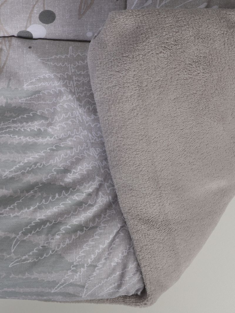 Contém: 01 Edredom Tecido: Plush e Malha Jersey Tamanho: Queen Medidas: 2,60m x 2,40m Composição malha: 100% algodão Composição plush e enchimento: 100% poliéster