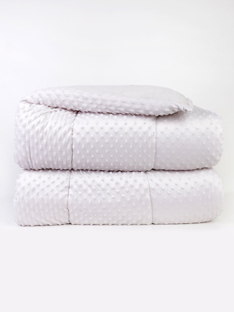 Edredom dupla face para cama queen desenvolvido em plush com toque acetinado de boa qualidade e durabilidade, este edredom não é apenas macio, mas também leve e respirável, proporcionando o equilíbrio perfeito de calor e conforto durante os dias mais frios do ano. Possui enchimento em poliéster que promove aconchego para suas noites de sono. Apresenta design luxuoso com bolinhas em relevo em um dos lados, uma experiência tátil que proporciona uma textura delicada e reconfortante, adicionando um toque de sofisticação a qualquer ambiente, enquanto o outro lado é liso. Este edredom é prático por não amassar e possui secagem rápida, facilitando a manutenção. Transforme suas noites em momentos de puro aconchego e elegância com esse edredom, ele é perfeito para proporcionar o descanso que você merece!