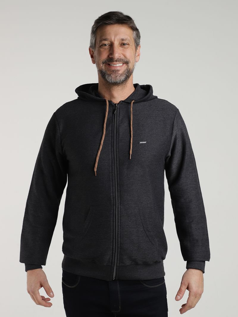 Jaqueta Moletinho com Capuz Masculina PRETO