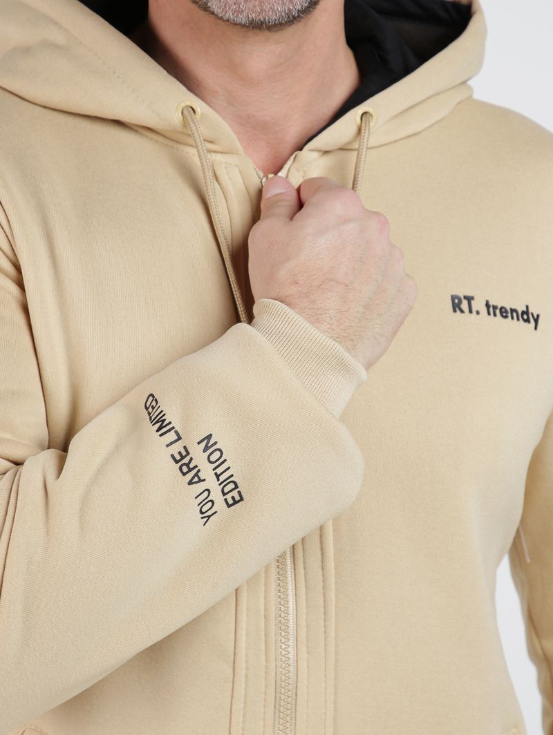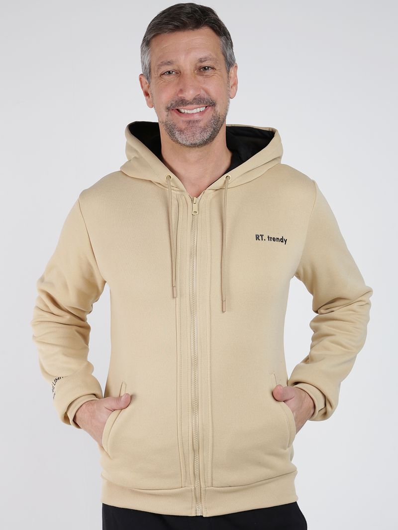 Jaqueta Moletom Com Capuz Masculina BEGE