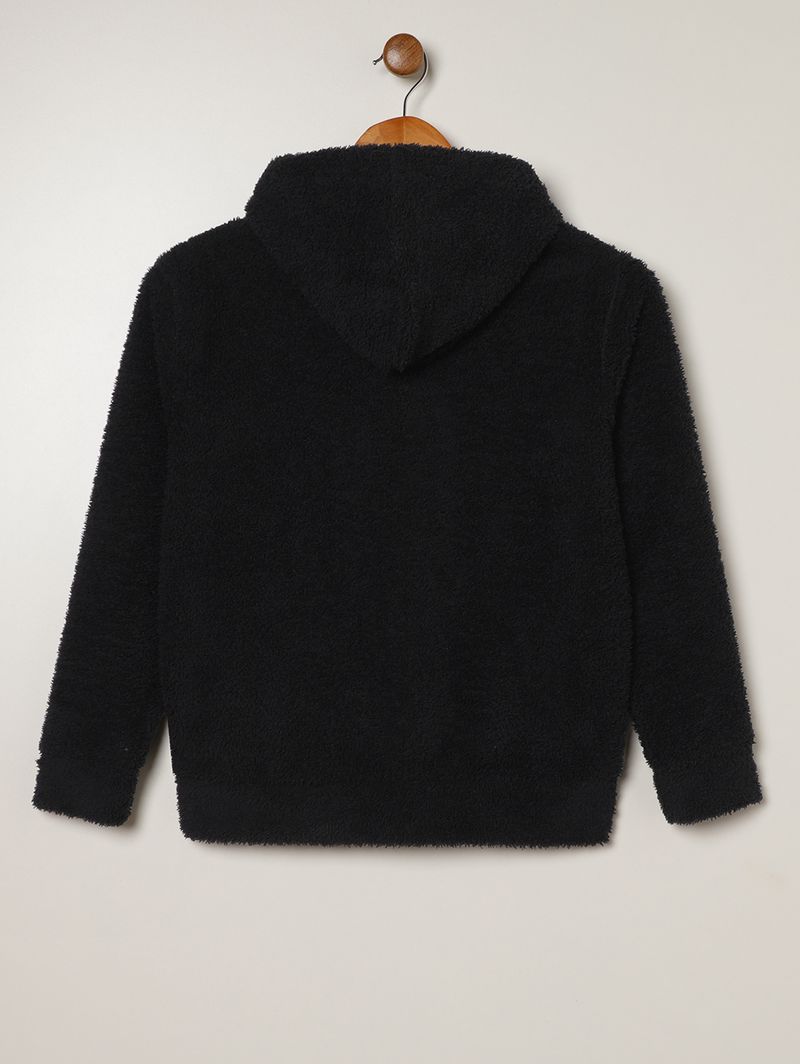 Jaqueta juvenil para menino desenvolvida em pêlo sintético, um material macio e quentinho. O modelo apresenta capuz com cordão funcional para ajuste, mangas compridas, fechamento frontal por zíper, bolsos frontais funcionais e barra com acabamento simples. O seu diferencial fica por conta do recorte em tom contrastante. Vista o seu menino com uma peça que é garantia de comodidade em dias frios!\n\nTecido: Pêlo sintético\nComposição: 100% poliéster