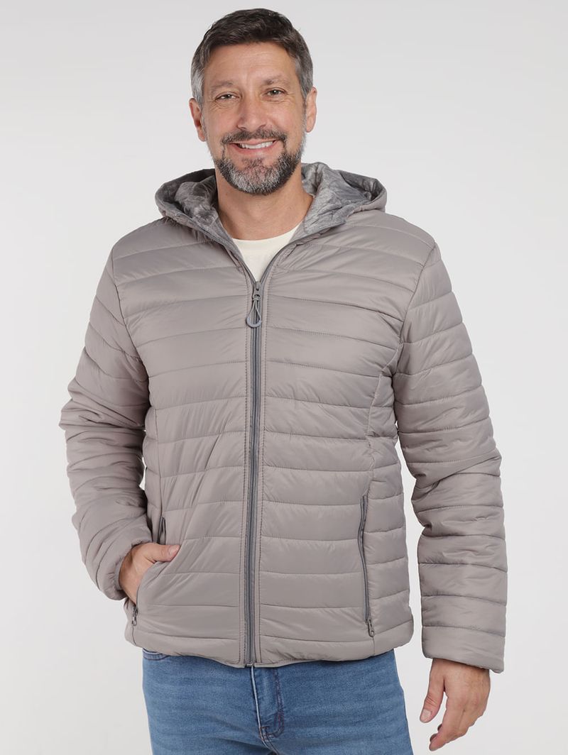Jaqueta Puffer Com Capuz Masculina CINZA