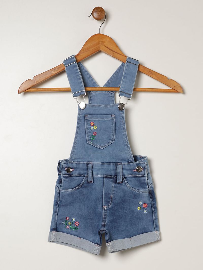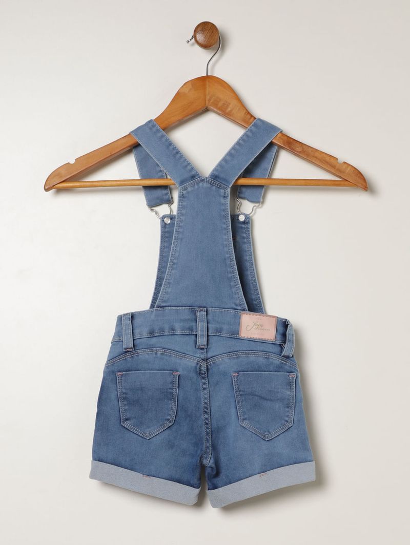 Jardineira Com Bordado Infantil Para Menina - AZUL