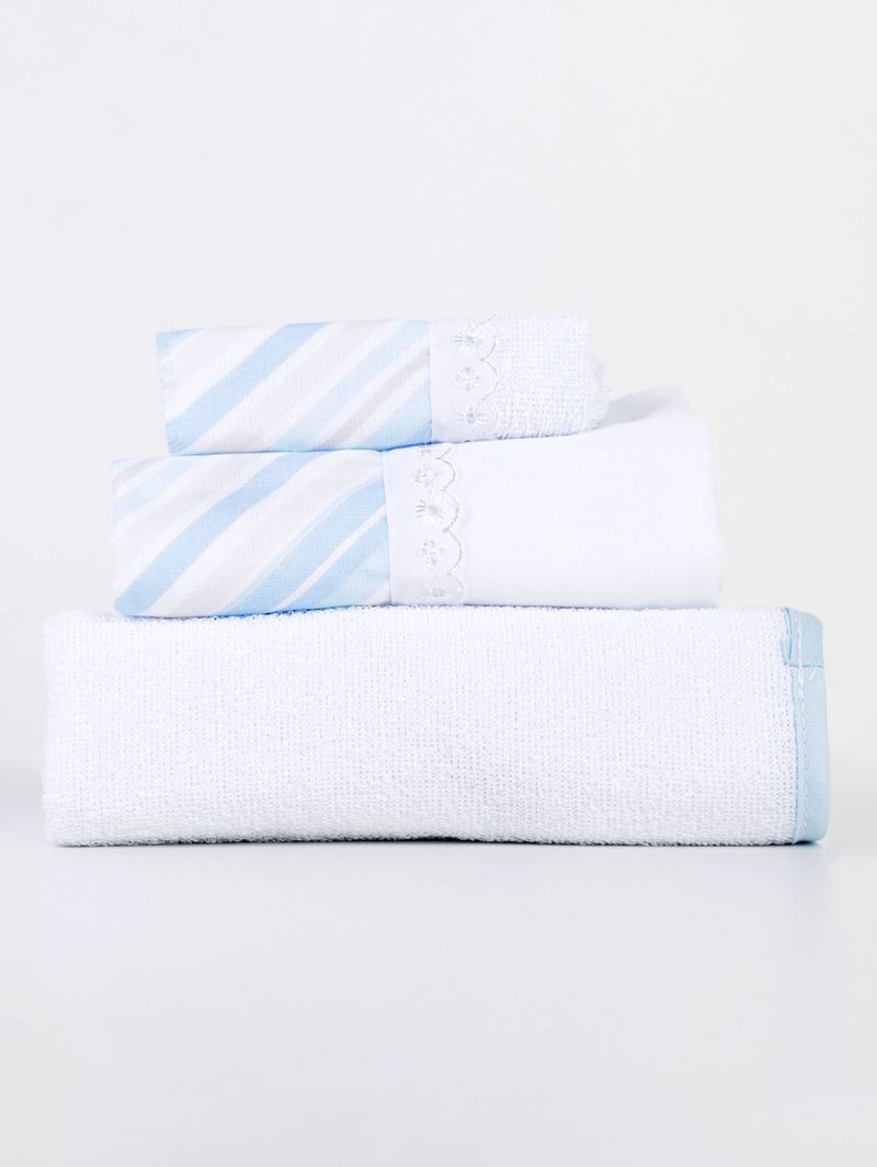 Jogo de Banho com Bordado Infantil Para Bebê - Azul
