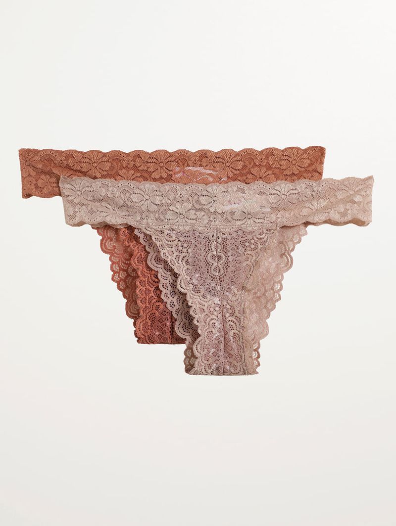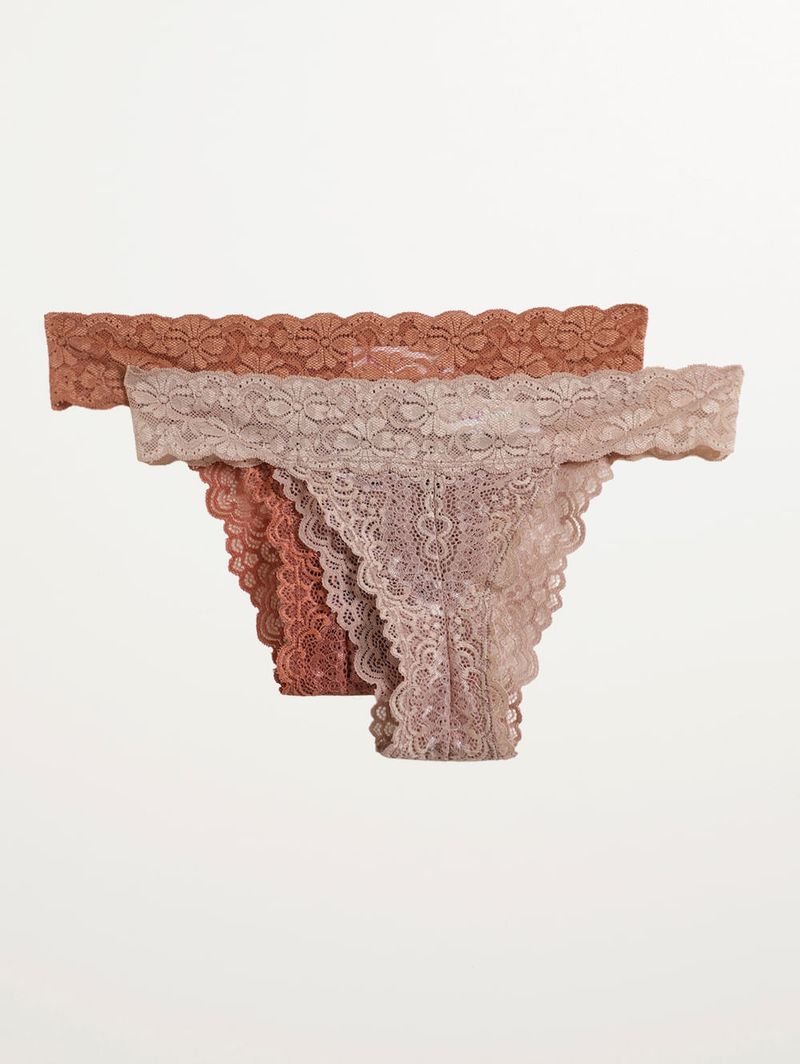 Kit Com 02 Calcinhas Tangas Feminino BEGE/MARROM