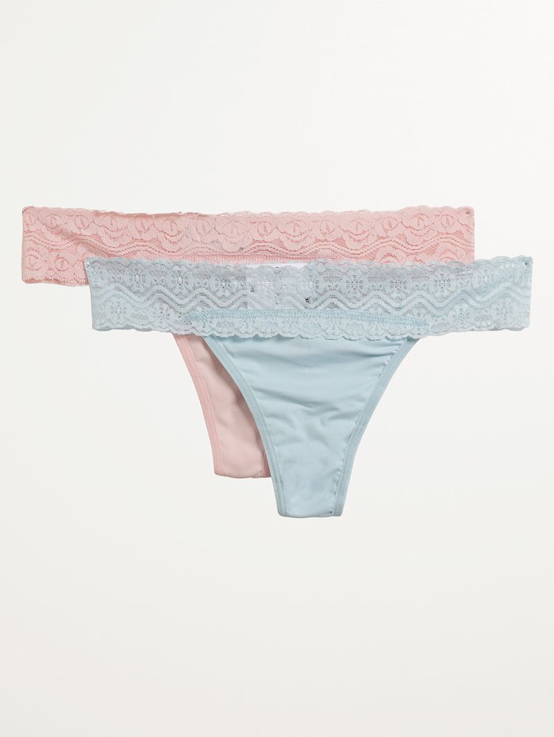 Kit com 02 Calcinhas Fio Duplo Feminina ROSA/AZUL