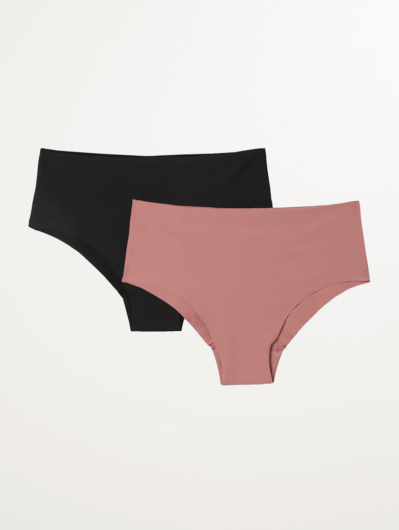 Kit Com 02 Calcinhas Sem Costura Feminina PRETO/ROSE