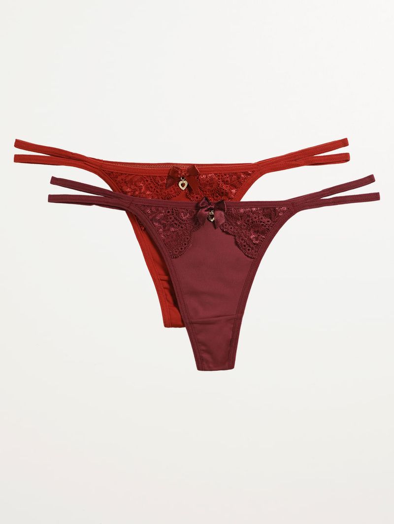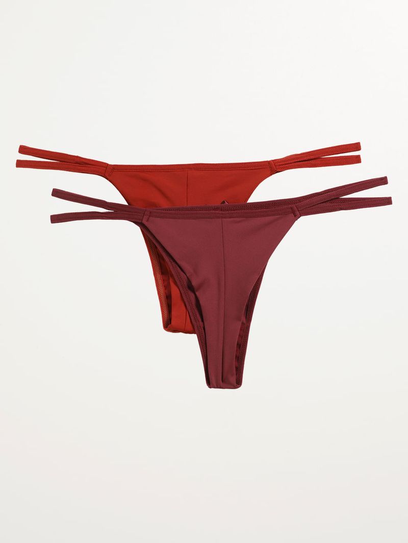Kit Com 02 Calcinhas Tanga Fio Duplo Feminino VINHO/TELHA