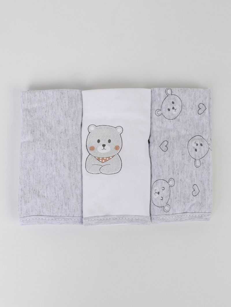 Kit com 03 Babetes Infantil Para Bebê - Cinza